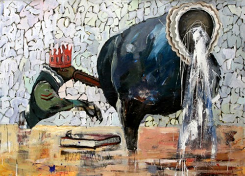 Even when the visual arts began their ascent into propagandist glory during the Early Renaissance, they used an inflexible language of composition and colour, reducing painting to a linear formula that artists had to work subtly and subversively to infuse with any true depth. In the Islamic world where figurative art had been put to the patriarchal sword of the Hadiths, the alphabet itself became a visual art as calligraphy sanctified the the written word alongside geometry in the pantheon of sacred beauty. Our thought processes themselves, even at their most subconscious, are so often framed in the abstract formulas that the patriarchal alphabet imposed on intuitive reality.